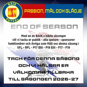 TACK TILL ALLA FÖR EN FANTASTISK SÄSONG… Tyvärr inget finalspel i år efter uttåg mot FC Kalmar i semifinalspelet men vi summerar en stark futsalsäsong